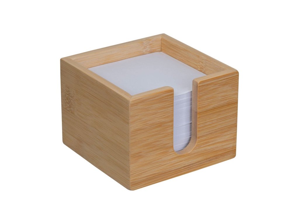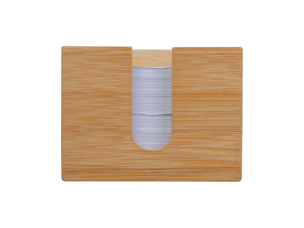 Bambusová krabička na poznámky s približne 700 listami recyklovaného papiera.