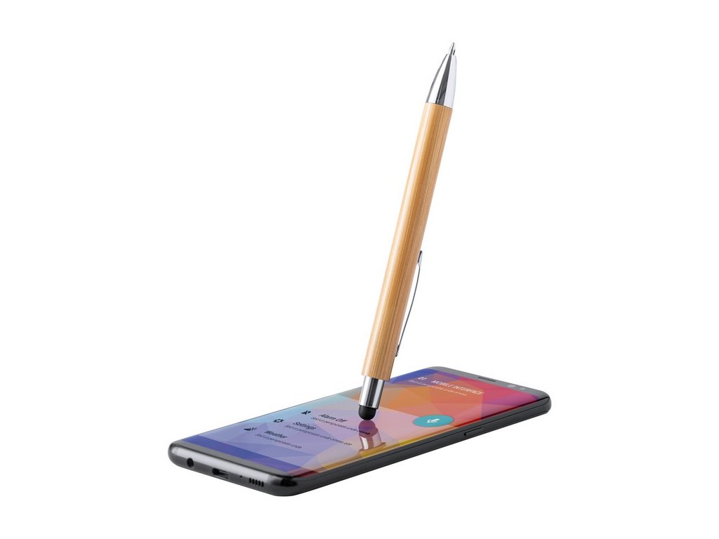 Bambusové dotykové a guličkové pero, modrá náplň, natural