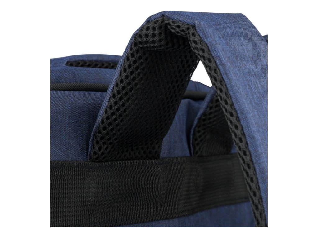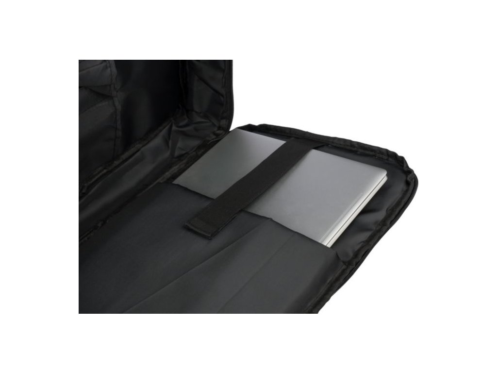 Batoh na notebook z 300D RPET s podšívkou z 210D RPET. Priehradka na zips s viacerými vreckami, vrecko na 15-palcový notebook, objem 12l. Vystužená, vetraná zadná časť, nastaviteľné ramenné popruhy, bočná rukoväť a popruh na kufor. Nosnosť 10 kg.