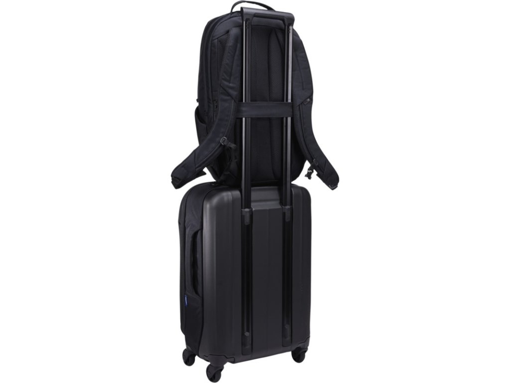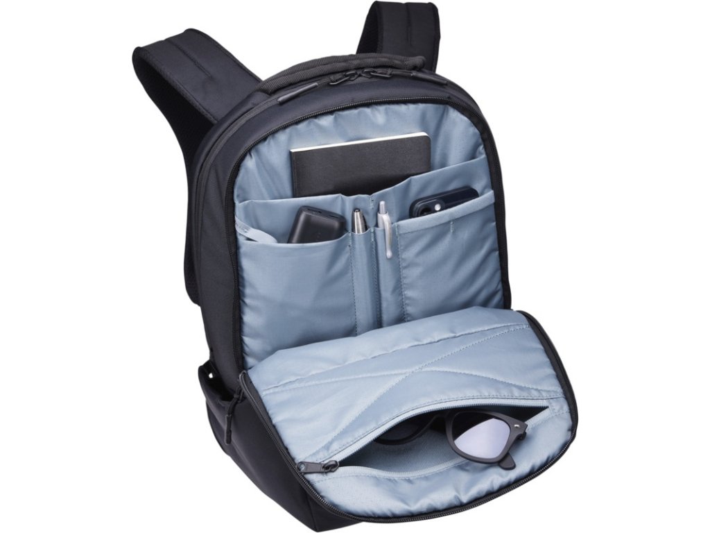 Polstrovaná priehradka na 15,6" notebook, puzdro na 10,9" tablet, vnútorný organizér na drobnosti, bezpečnostné vrecko na doklady a iné cennosti na zadnom paneli, bočné vrecká na fľašu alebo dáždnik, popruh na kufor.