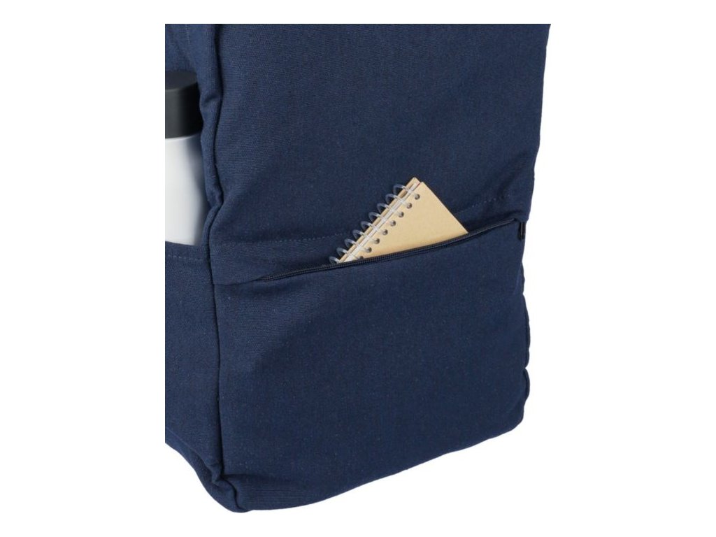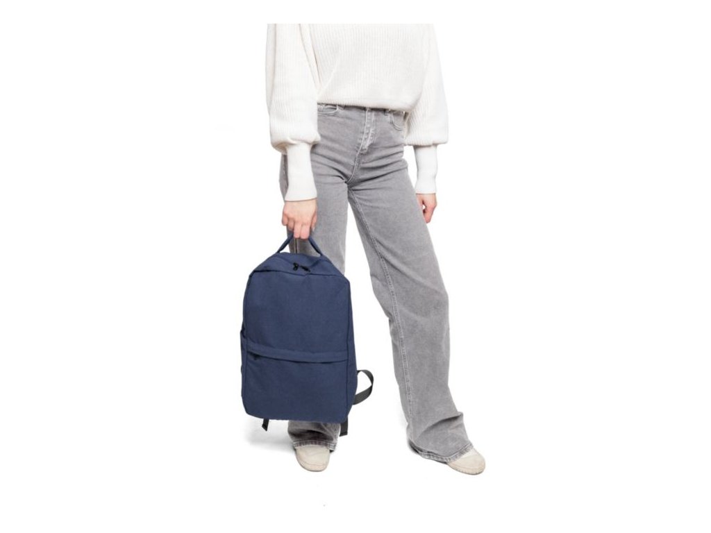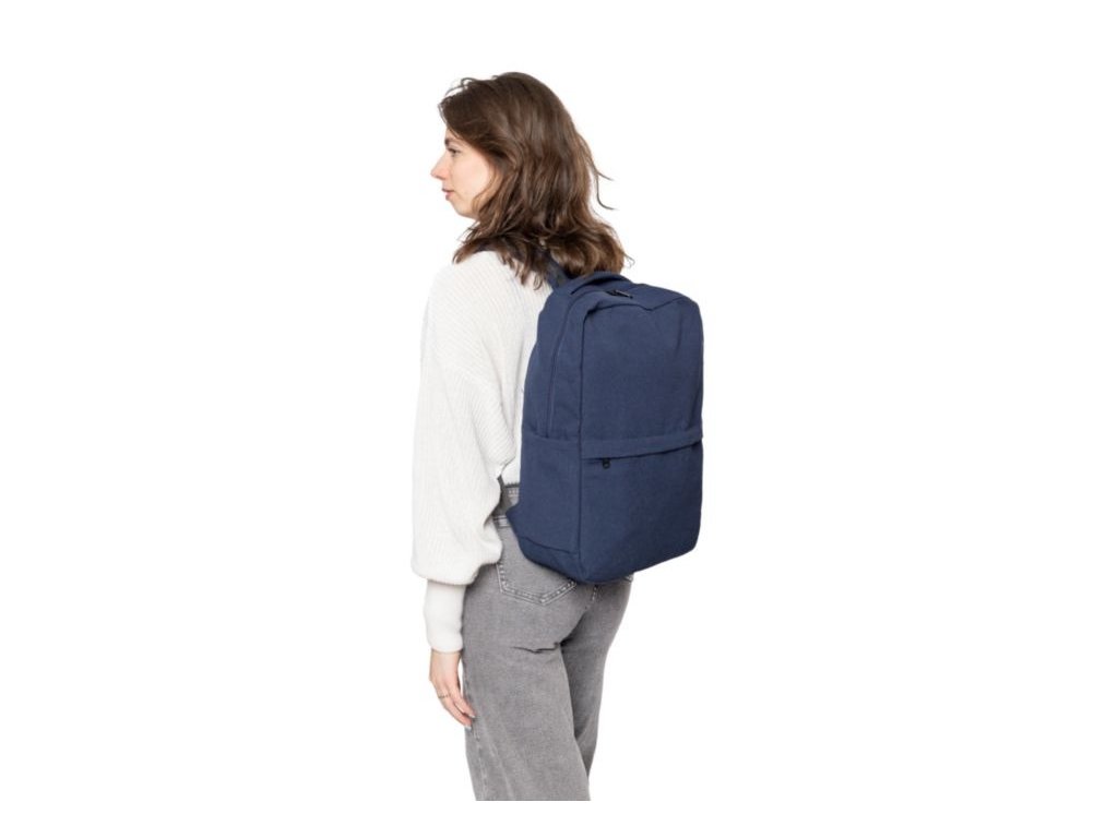 Batoh z recyklovanej polybavlny (330 g/m2). Veľké vrecko na zips na 15-palcový notebook, 2 vnútorné priehradky a 2 vonkajšie priehradky, bočné vrecko a malé predné vrecko na zips. Polstrované nastaviteľné popruhy. Kapacita 14 l. Nosnosť 13 kg.