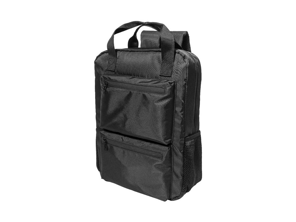 Batoh z RPET s priehradkou na zips, 2 prednými vreckami na zips, polstrovanou priehradkou na notebook (15") a bočnými sieťovanými vreckami. S polstrovaným chrbtom a ramennými popruhmi, vreckom proti krádeži a rolovacím popruhom. Keprový polyester RPET.