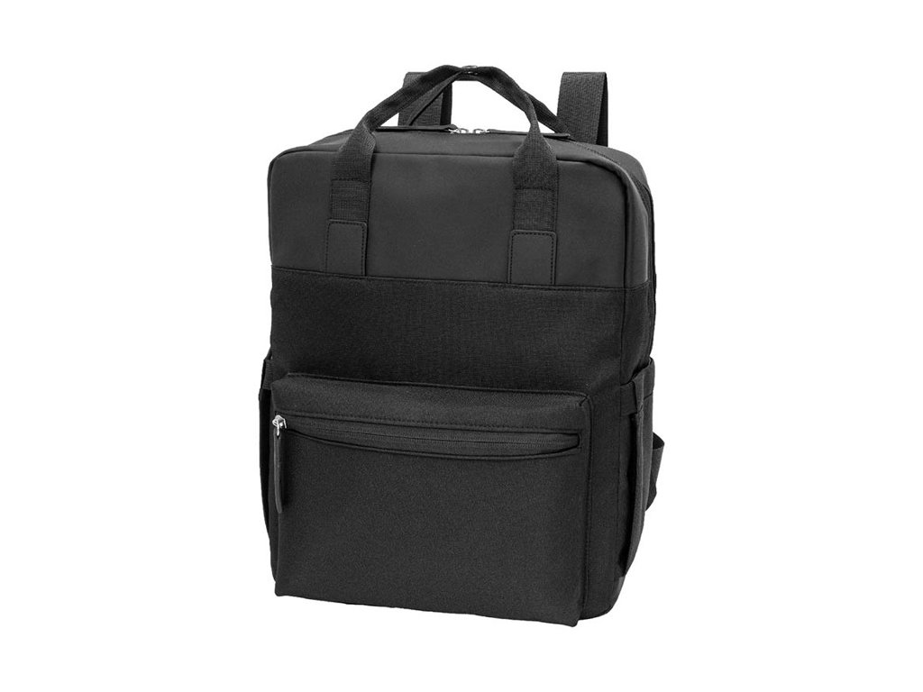 Batoh RPET s vrchnou časťou z mäkkej PU kože, priehradkou na zips, predným vreckom na zips, bočnými vreckami a vreckom proti krádeži. S rolovacím popruhom, polstrovaným chrbtom a priehradkou na notebook (15"). V netkanom vrecku z RPET.