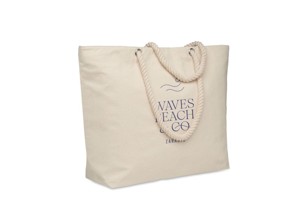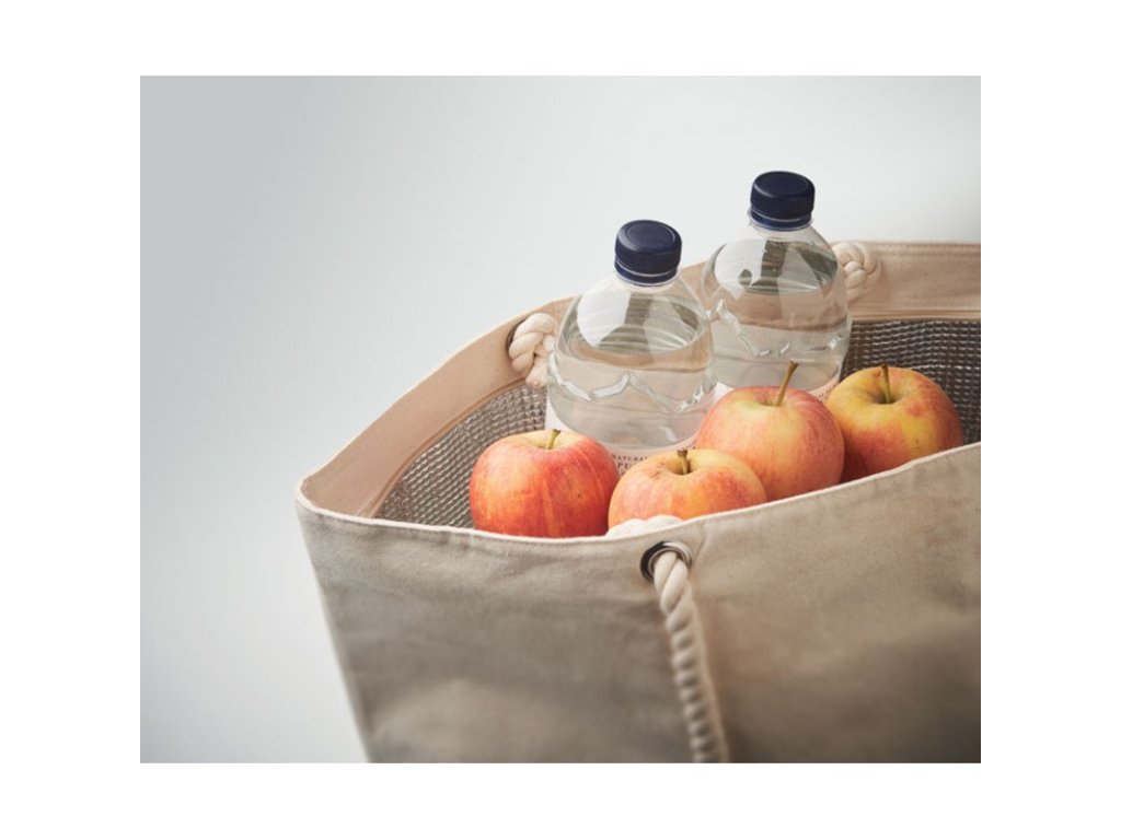 Bavlnená chladiaca plážová taška na zips s rukoväťou zo šnúry. 220 g/m2. Izolácia z 2mm hliníkovej fólie.