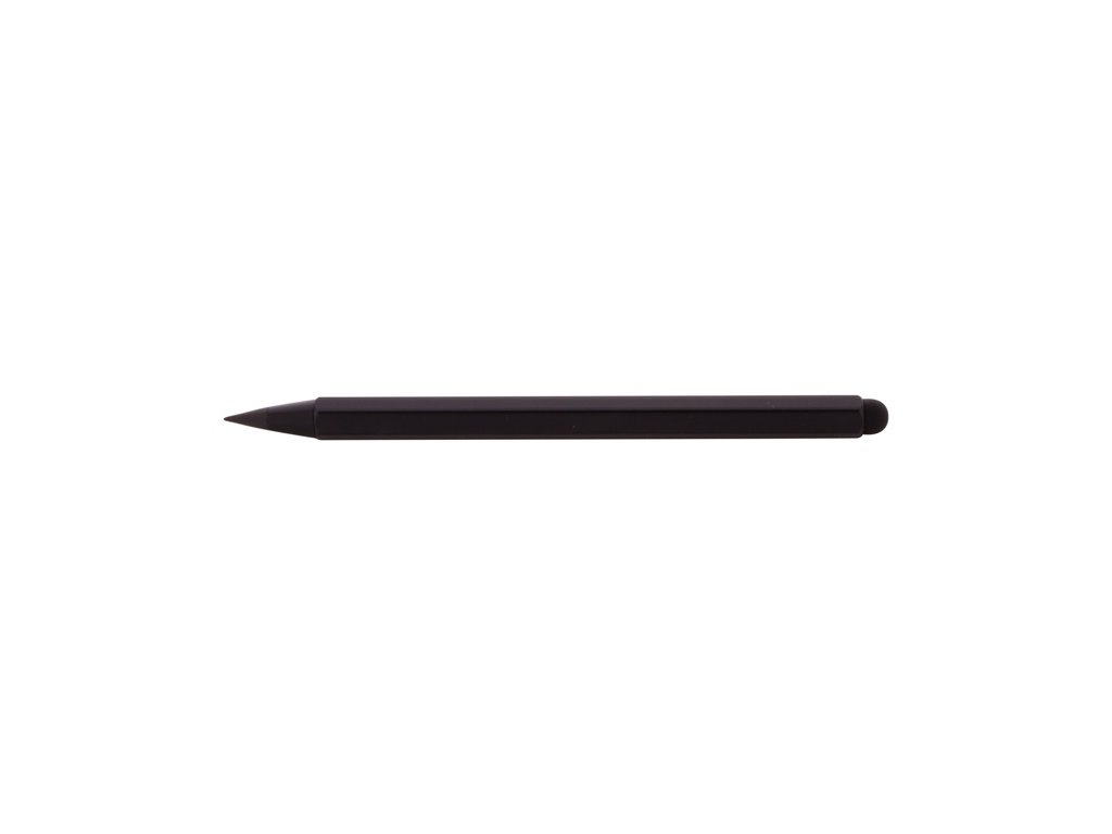 Bezatramentové dotykové pero s dlhou životnosťou z recyklovaného hliníka s hrotom z kovovej zliatiny, ktorý oxiduje papier. Šesťhranné telo poslúži ako pravítko s mierkou 11 cm a 4 palce. Toto pero píše podobne ako ceruzka a navyše je stierateľné.