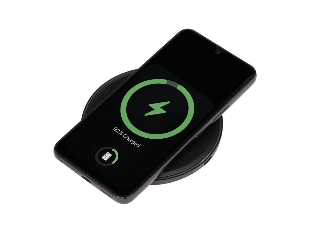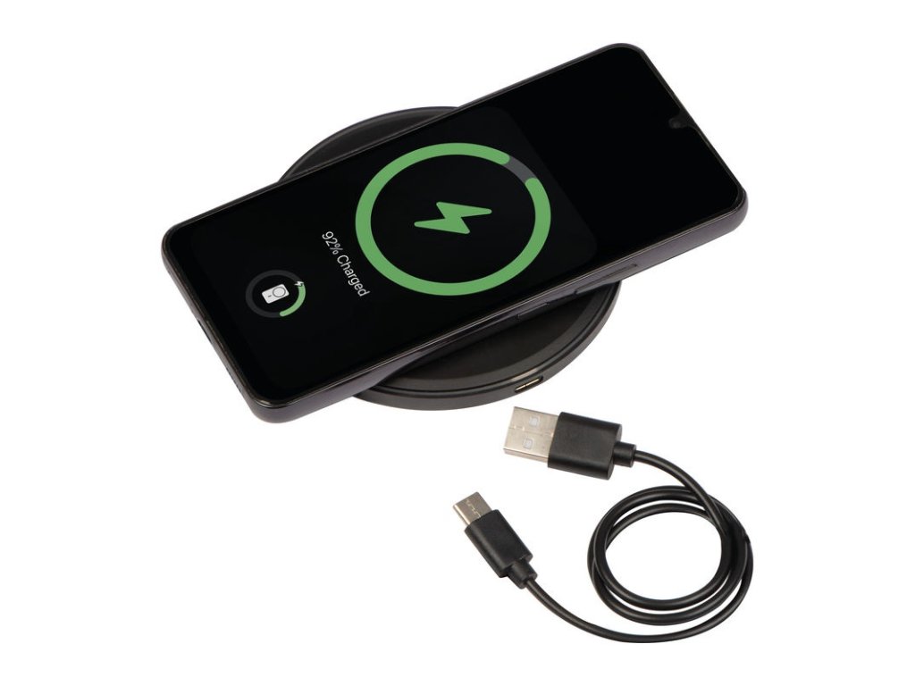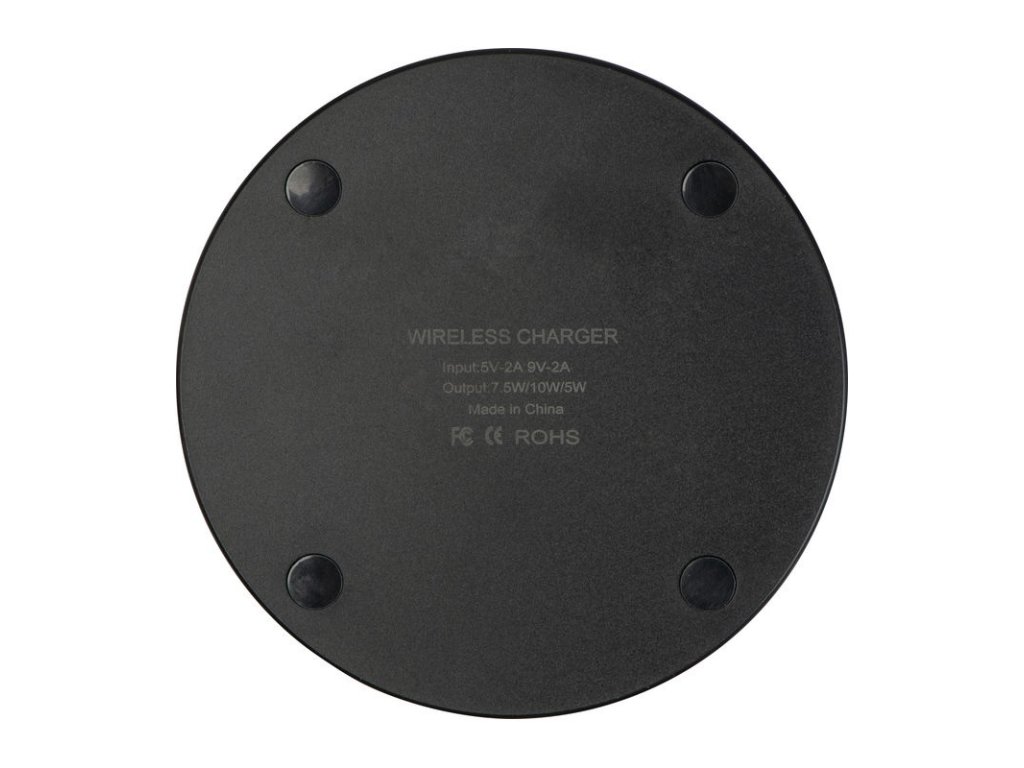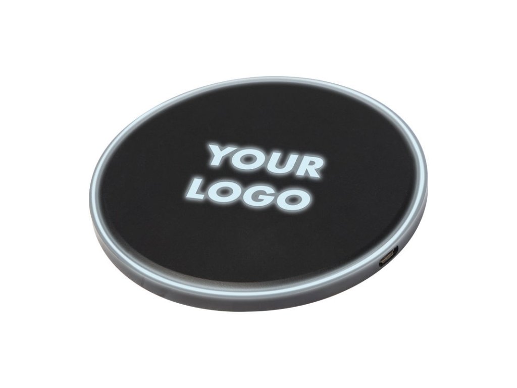 Bezdrôtová nabíjačka s funkciou rýchleho nabíjania (10 W). Zariadenie je pripravené na nabíjanie po rozsvietení zeleného LED krúžka; počas nabíjania svieti modrý LED krúžok. Odporúčame gravírovať logo do stredu dosky, gravírovanie svieti počas pripojenia.