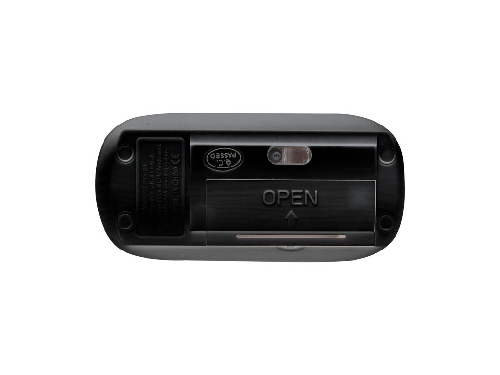 Bezdrôtová plastová optická myš. Pracuje s 2 batériami AAA, dodávané bez batérií. Toto zariadenie používa nešifrované bezdrôtové RF pripojenie; preto nie je možné prevádzkovať viac kusov v rovnakej miestnosti (alebo v okruhu 10 metrov).