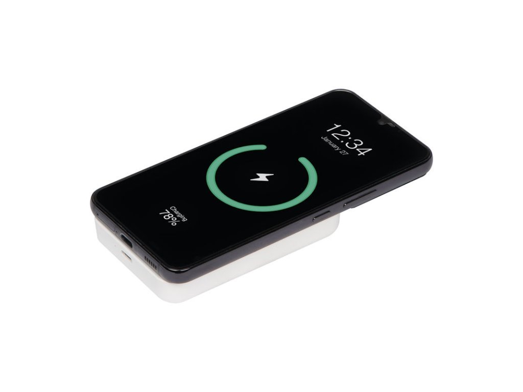 MagSafe powerbank s kapacitou 5000mAh. S USB-C portom na nabíjanie. Kompatibilné zariadenia od iPhone 12, Android zariadenia s funkciou nabíjania MagSafe.