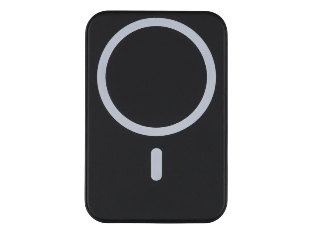 Bezdrôtová nabíjačka z recyklovaného ABS plastu (5 000 mAh). 15W bezdrôtové nabíjanie kompatibilné s MagSafe. Vstup/výstup typu C, bezpečnostná ochrana, automatické vypnutie. Súčasťou je kovový krúžok pre zariadenia bez MagSafe. Balené v hnedej krabici.