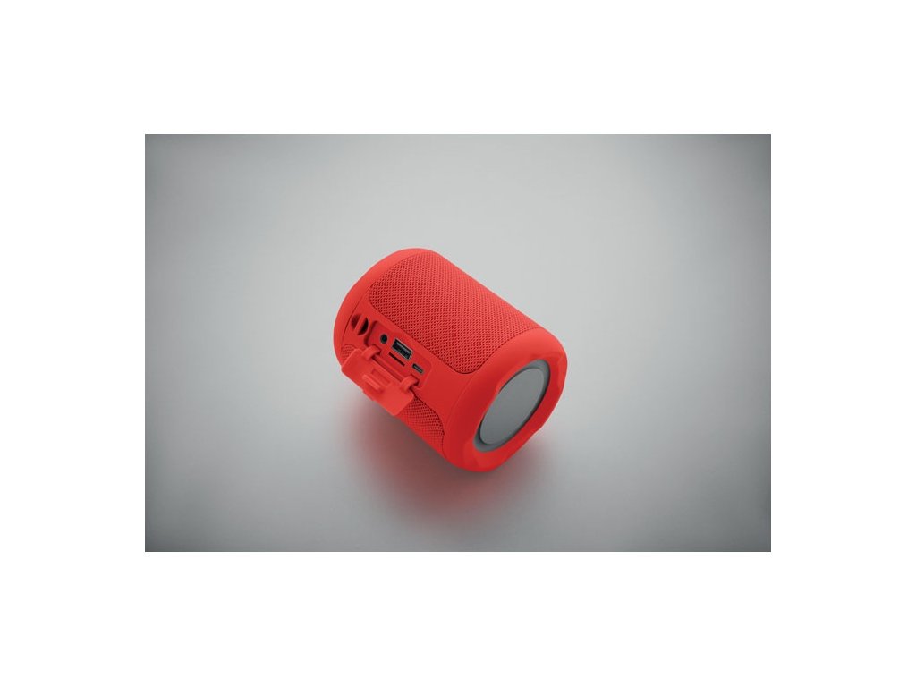 Bezdrôtový 5.0 reproduktor z ABS plastu s RPET tkaninou. Súčasťou balenia je 1 nabíjateľná Li-ION batéria s kapacitou 800 mAh. Vrátane portu pre SD kartu a kábla AUX/USB. Výstupné údaje: 5 W, 3 Ohmy a 5 V. Doba prehrávania približne 3 hodiny.