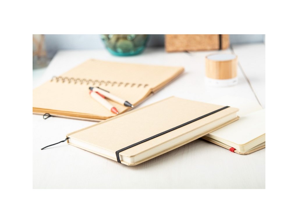 Blok s doskami z lepenky, so 100 čistými listami, farebnú záložkou a gumičkou.