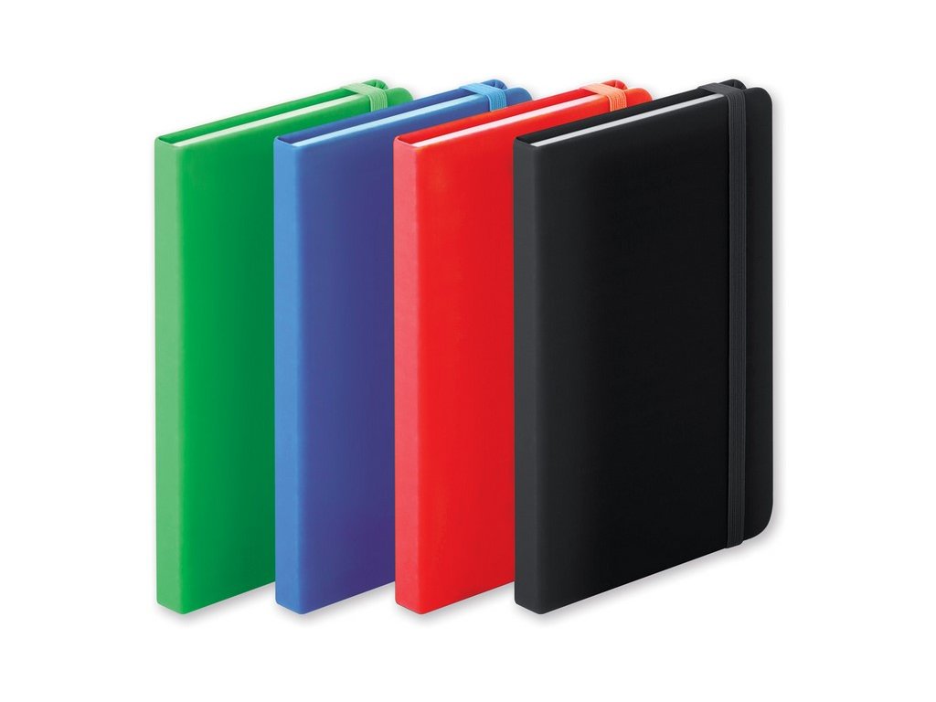 Blok s doskami z PU kože, sa 100 linkovaným listy, záložkou a gumičkou.