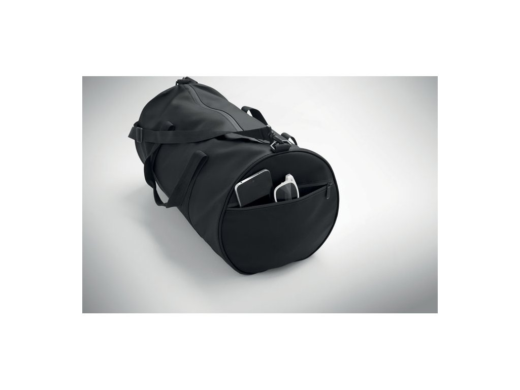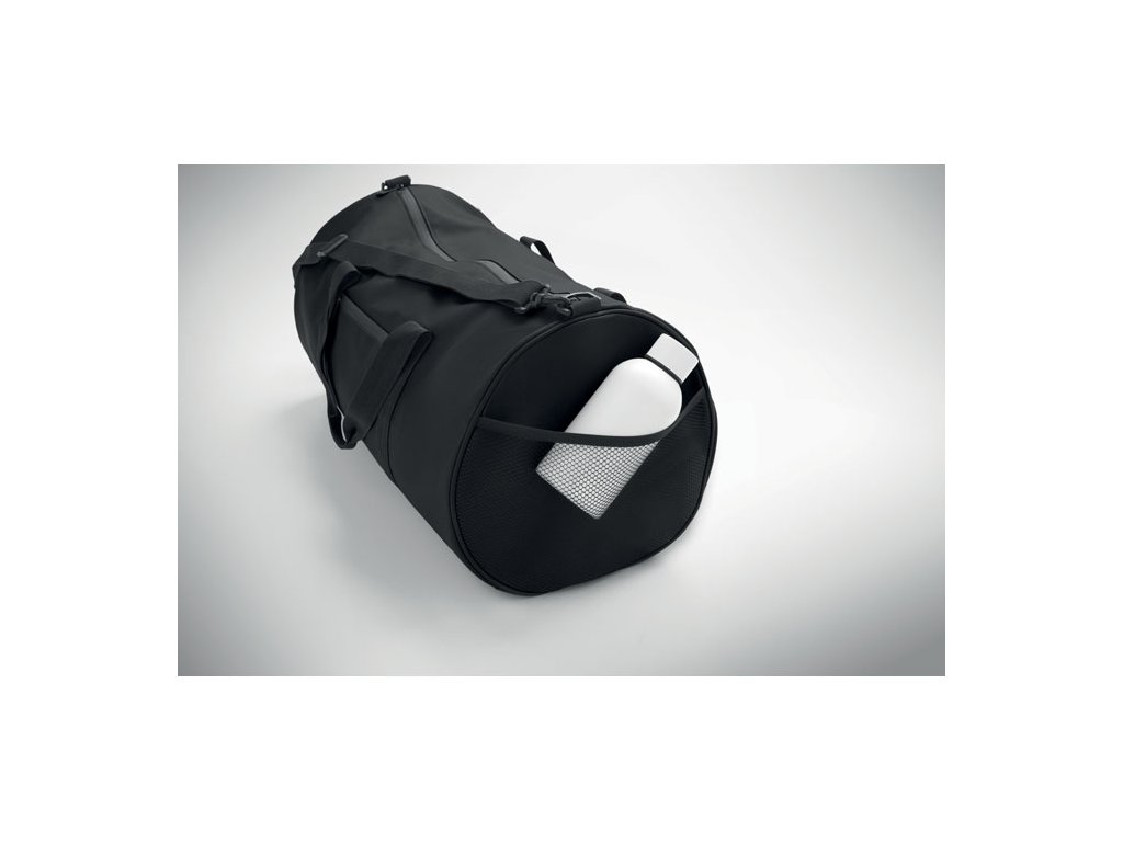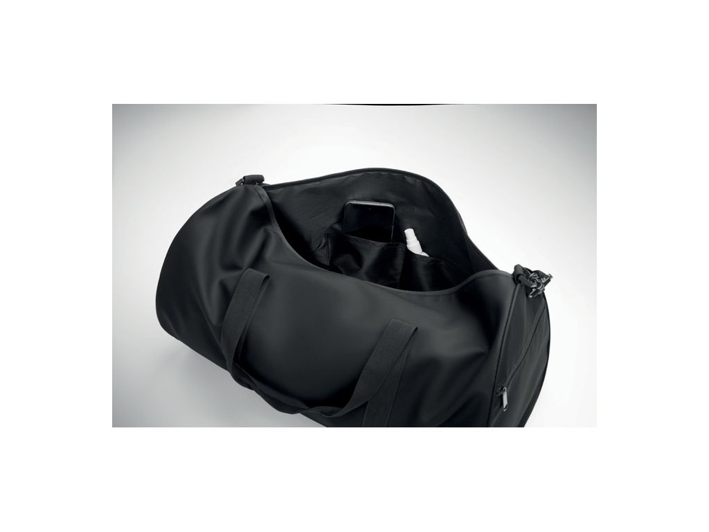 Cestovná taška z 600D RPET polyesteru s PU záterom. Predné vrecko na zips. Vnútorná podšívka z 210D RPET polyesteru. 1 bočné vrecko na zips / 1 bočné sieťované vrecko. Vnútorné vrecko na zips.