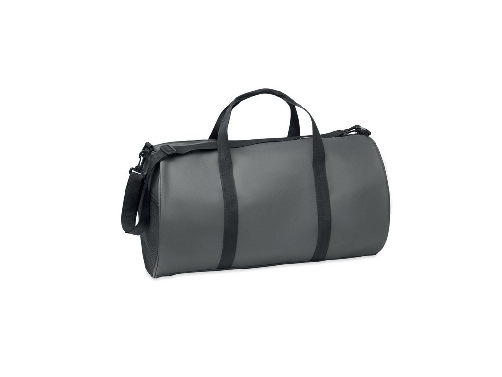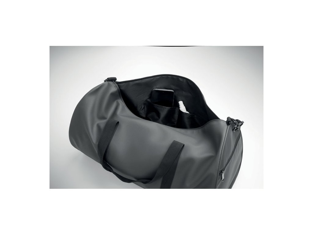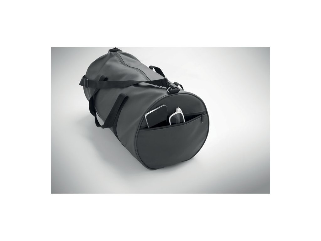 Cestovná taška z 600D RPET polyesteru s PU záterom. Predné vrecko na zips. Vnútorná podšívka z 210D RPET polyesteru. 1 bočné vrecko na zips / 1 bočné sieťované vrecko. Vnútorné vrecko na zips.
