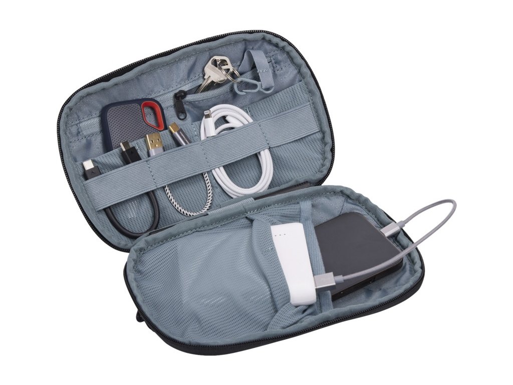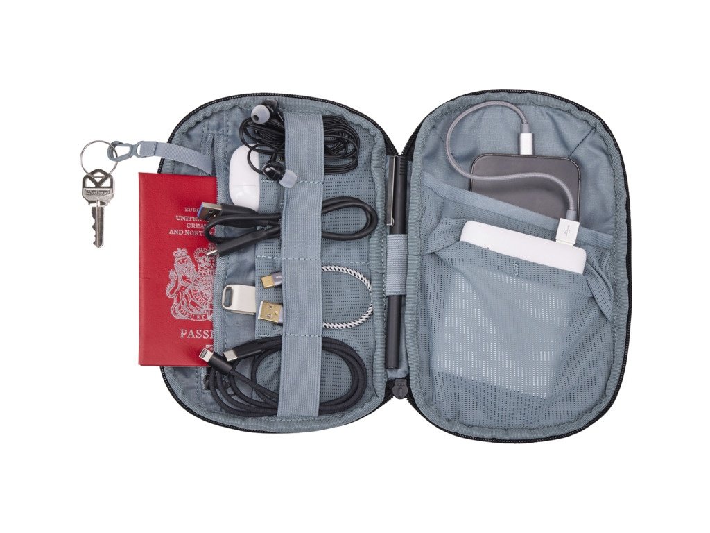 Stredné puzdro Thule Subterra Powershuttle poskytuje premyslené úložné priestory pre nabíjačky, káble, adaptéry, menšiu elektroniku, perá a ďalšie predmety. Tento organizér má rôzne všestranné vrecká a elastické pútka a tiež praktický prívesok na kľúče.