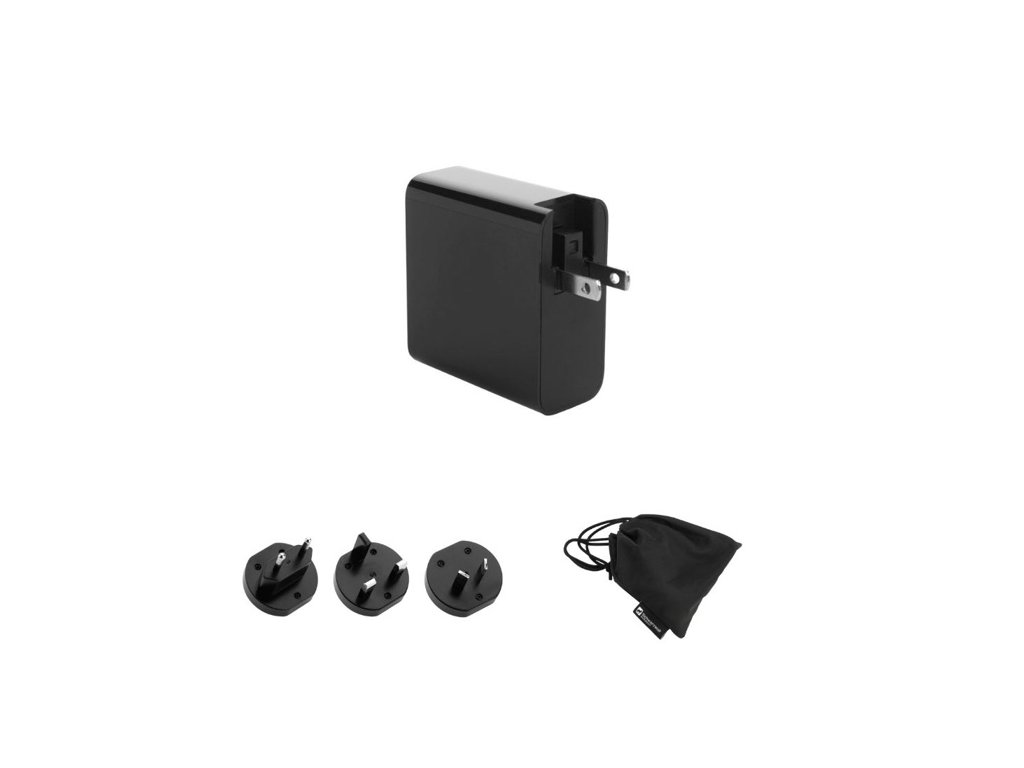 Cestovný adaptér 65W so 4 rôznymi zástrčkami (EÚ, Veľká Británia, Austrália/Nový Zéland, USA/Kanada). 3 USB vstupy (USB + 2 × USB typu C). Vstup AC 100V – 240V 50/60Hz, výstup PD 65W + PD20W + Q3.0. Balené v čiernom sťahovacom vrecku a darčekovej krabičke.