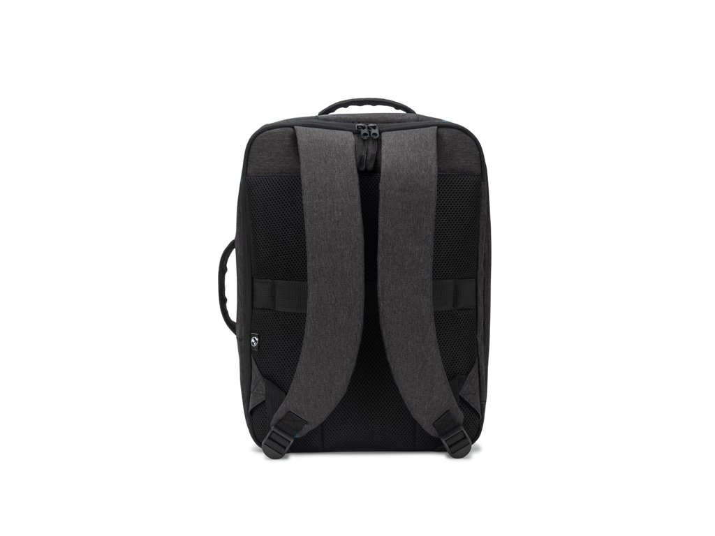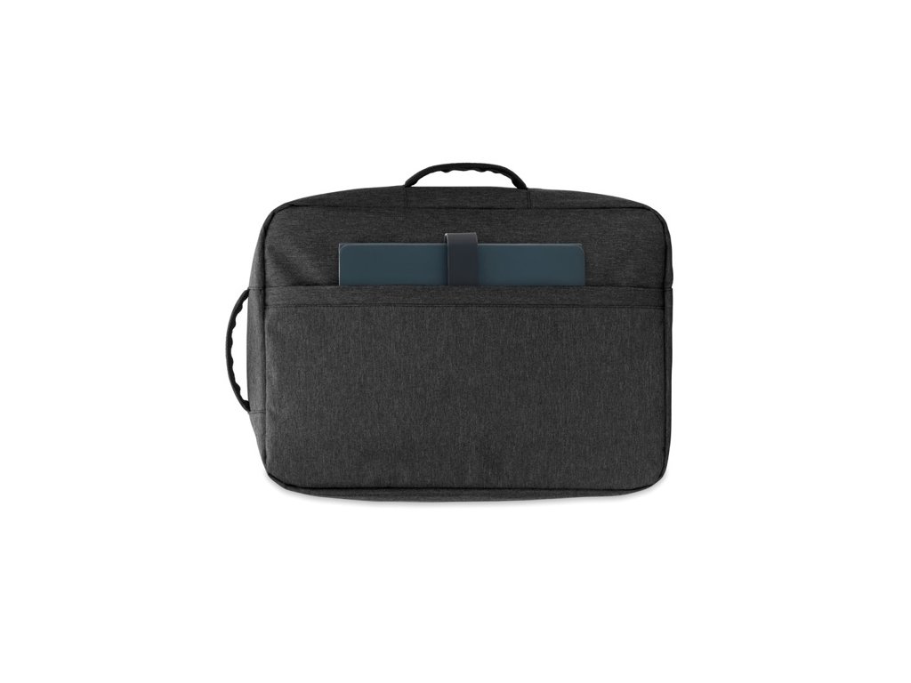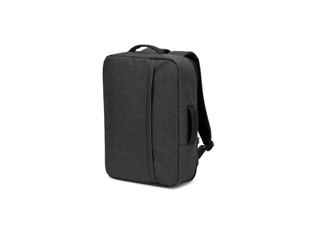 Batoh z 300D RPET a podšívky zo 190T RPET. Hlavný priečinok na laptopy do 15.6", ktorý sa dá úplne otvoriť, a veľké predné vrecko. Batoh sa dá použiť aj ako aktovka vďaka bočnému držadlu. Sieťovaný chrbát obsahuje popruh na kufor. Kapacita až 15 L.