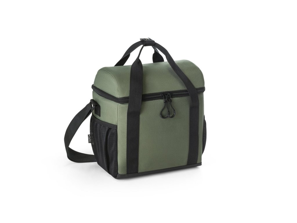 Polstrovaná chladiaca taška sa skladá z 1 veľkej hlavnej komory s dvojitým zipsom na oboch stranách a 2 bočných sieťovaných vreciek na drobnosti. Vnútro s PEVA podšívkou zaisťuje dobrú tepelnú izoláciu. Objem až 11 litrov