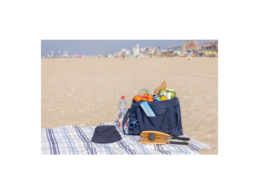 Je vybavená 2 popruhovými ušami a nastaviteľným 140cm ramenným popruhom. Predné pútka umožňujú pripevniť drobné predmety, predné vrecko na zips a zadný sieťovaný držiak na nápoje. Priestranná hlavná priehradka s PEVA podšívkou. AWARE™. Bez PVC.
