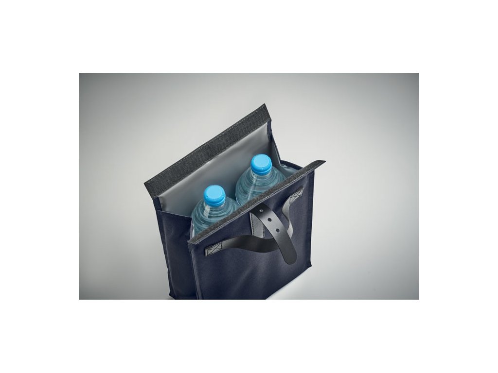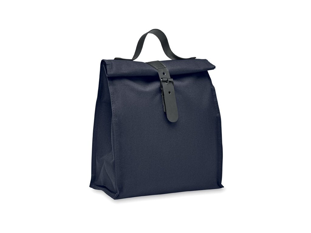600D RPET polyesterová izolovaná chladiaca taška na obed s PU rukoväťou a uzáverom. Izolácia: 3mm PE pena s PEVA.