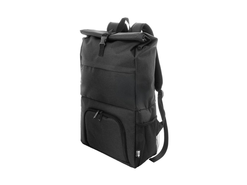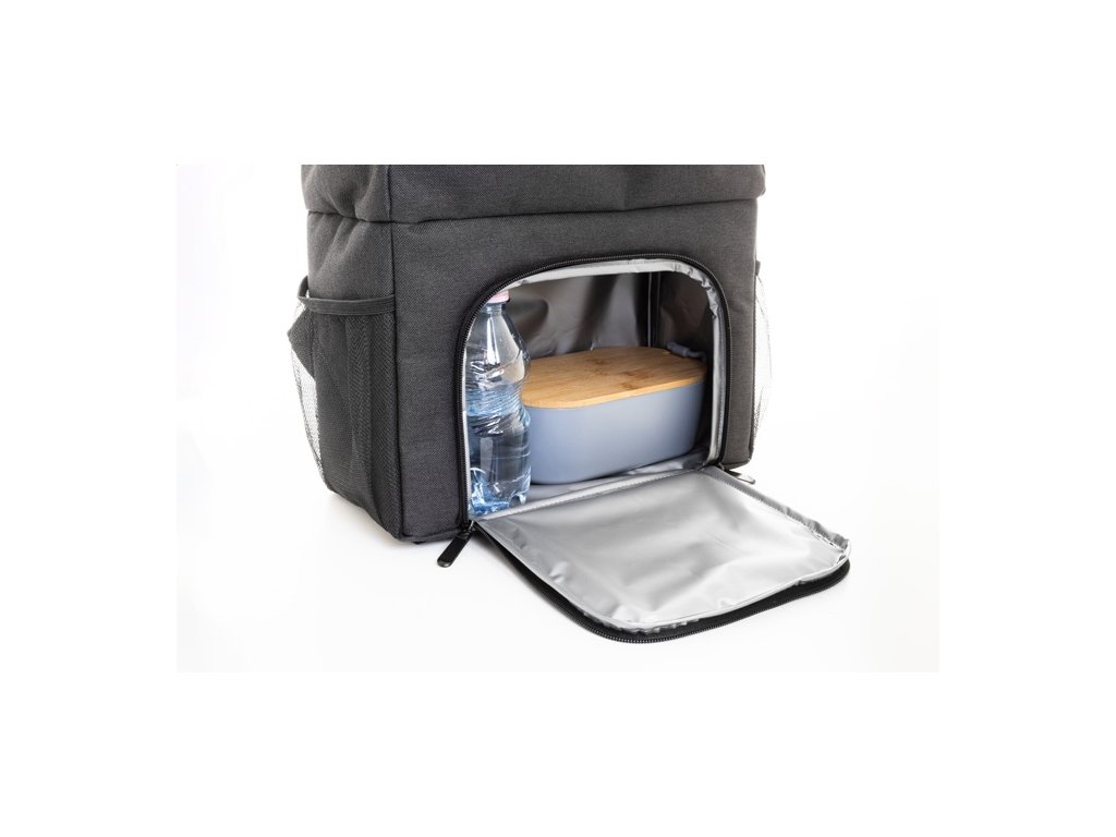 Rolltop RPET chladiaci batoh s PEVA polstrovanou priehradkou na zips na jedlo. S hlavnou priehradkou na sponu, predným vreckom na zips, bočnými sieťovanými vreckami a polstrovanými ramennými popruhmi.