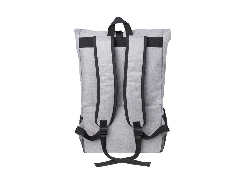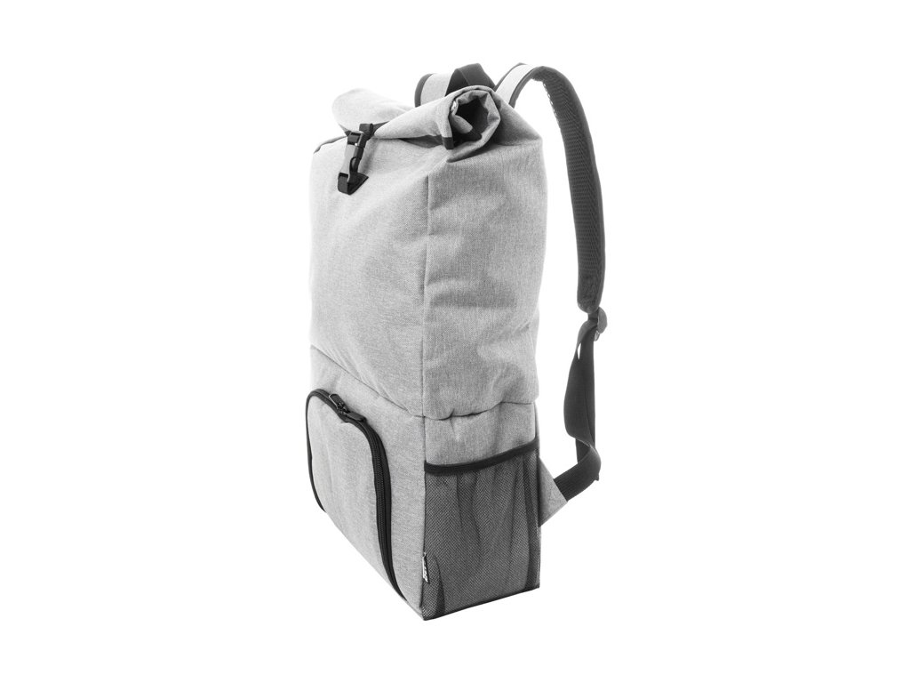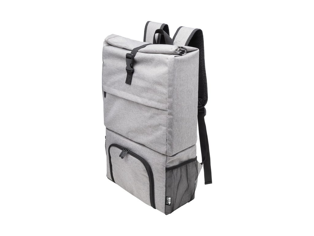 Rolltop RPET chladiaci batoh s PEVA polstrovanou priehradkou na zips na jedlo. S hlavnou priehradkou na sponu, predným vreckom na zips, bočnými sieťovanými vreckami a polstrovanými ramennými popruhmi.