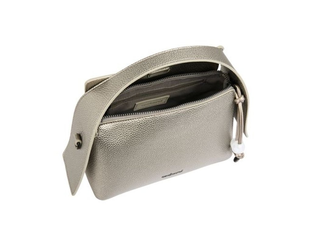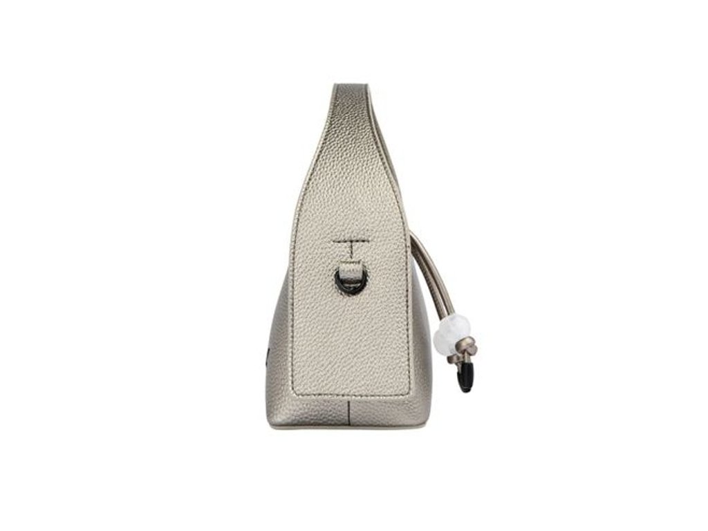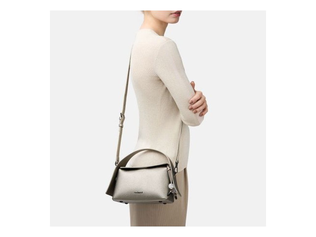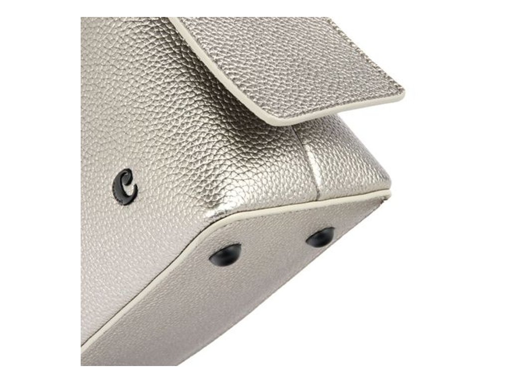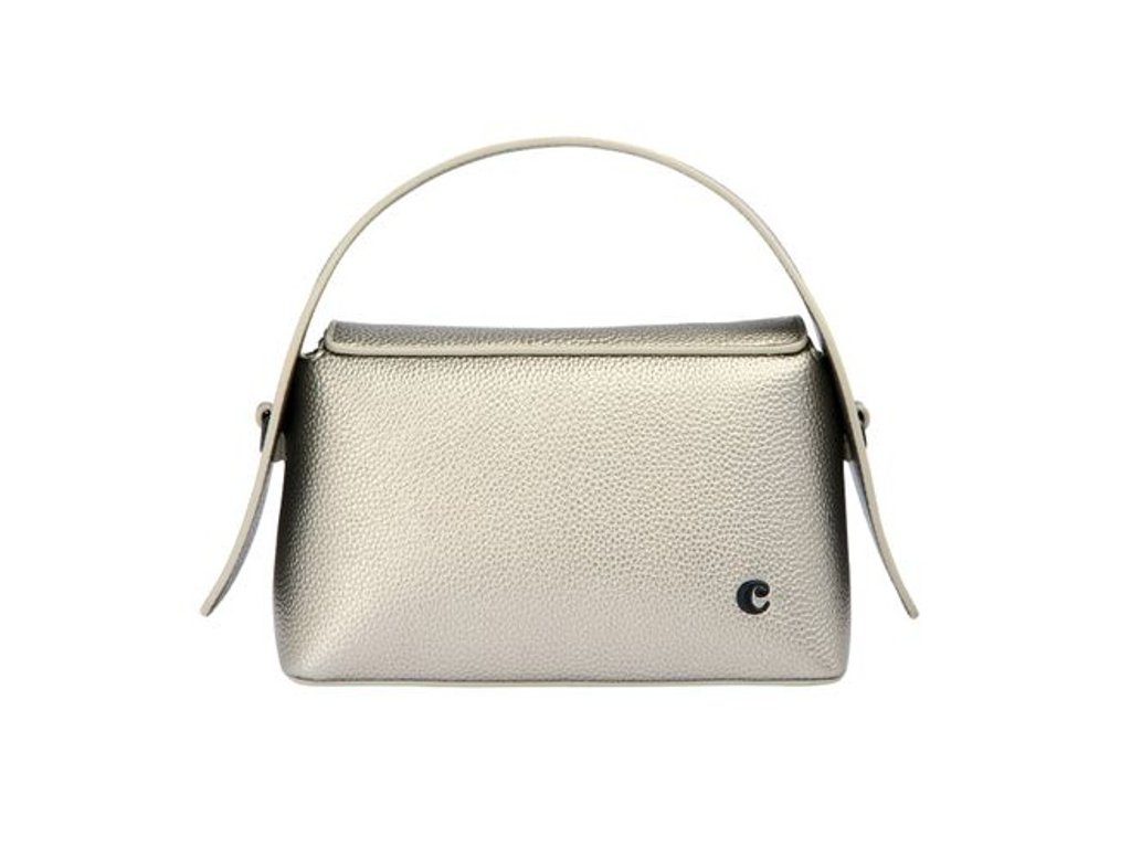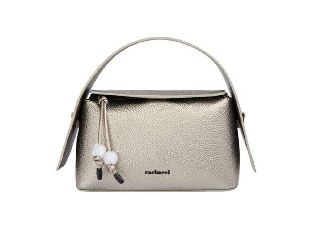 Kabelka z kolekcie Clementine je vyrobená z vegánskej kože (PU) so zrnitým matným povrchom. Matné kovové akcenty, ikonické logo „Cacharel“ na prednej strane a štítok „C“ na zadnej strane.