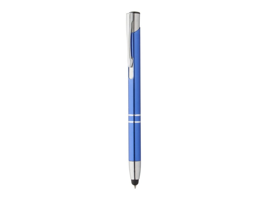 Hliníkové guličkové pero s dotykovým koncom a modrou náplňou.