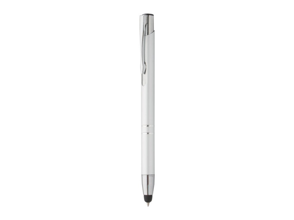 Hliníkové guličkové pero s dotykovým koncom a modrou náplňou.
