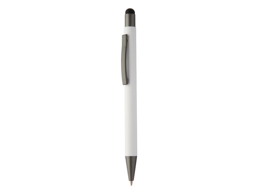 Hliníkové guľôčkové a dotykové pero s pogumovaným povrchom, s modrou náplňou.