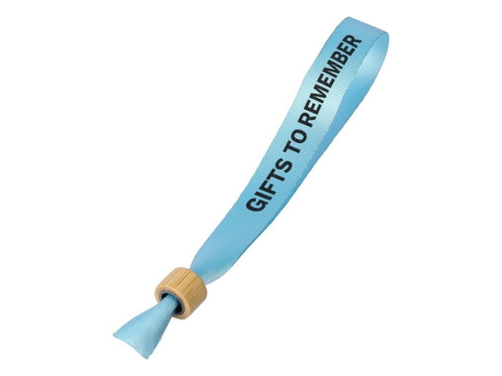 Náramok na zápästie z RPET 300D s bambusovou sponou. Dĺžka 34 cm a šírka 1,5 cm.