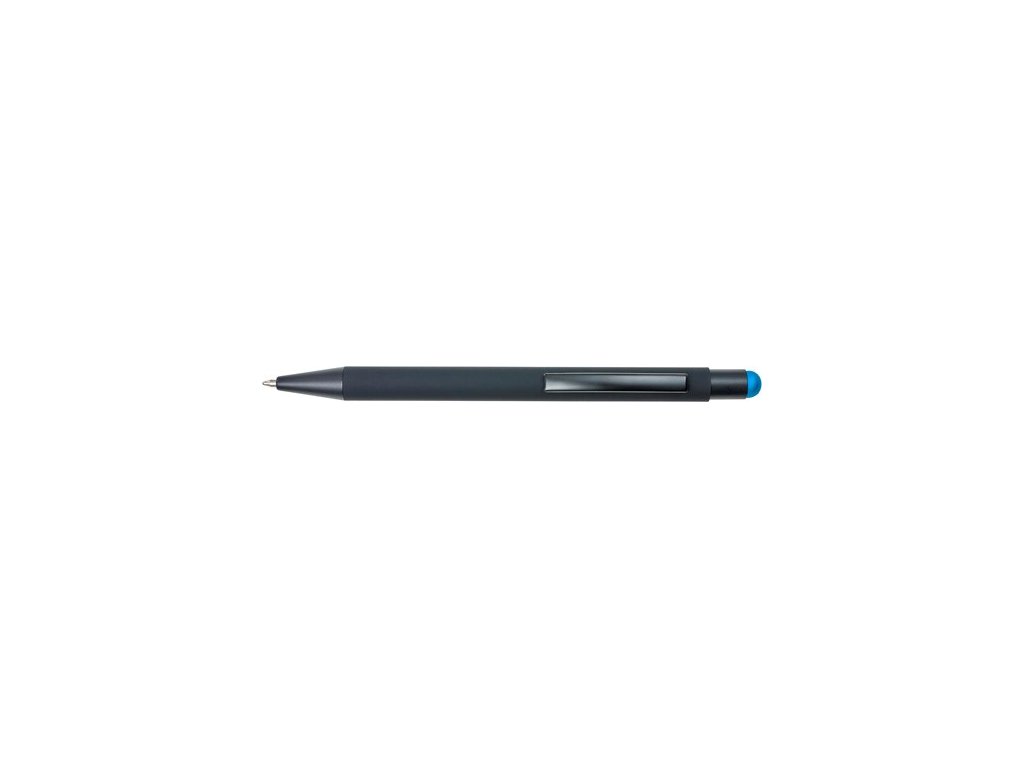 Hliníkové a ABS guľôčkové pero s gumovým poťahom a gumovou špičkou pre kapacitné obrazovky. Ak je pero laserované, odtlačok sa zobrazí farebne. Modrý atrament.