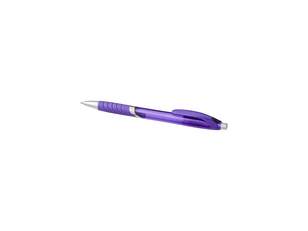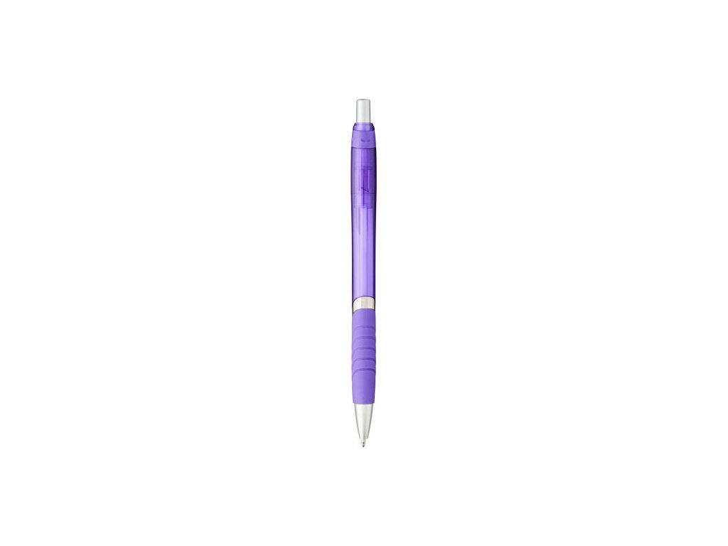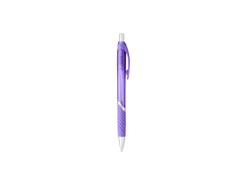 Priesvitné guľôčkové pero Turbo s gumovým úchopom, telom z farebného priesvitného plastu a so sponou rovnakej farby.