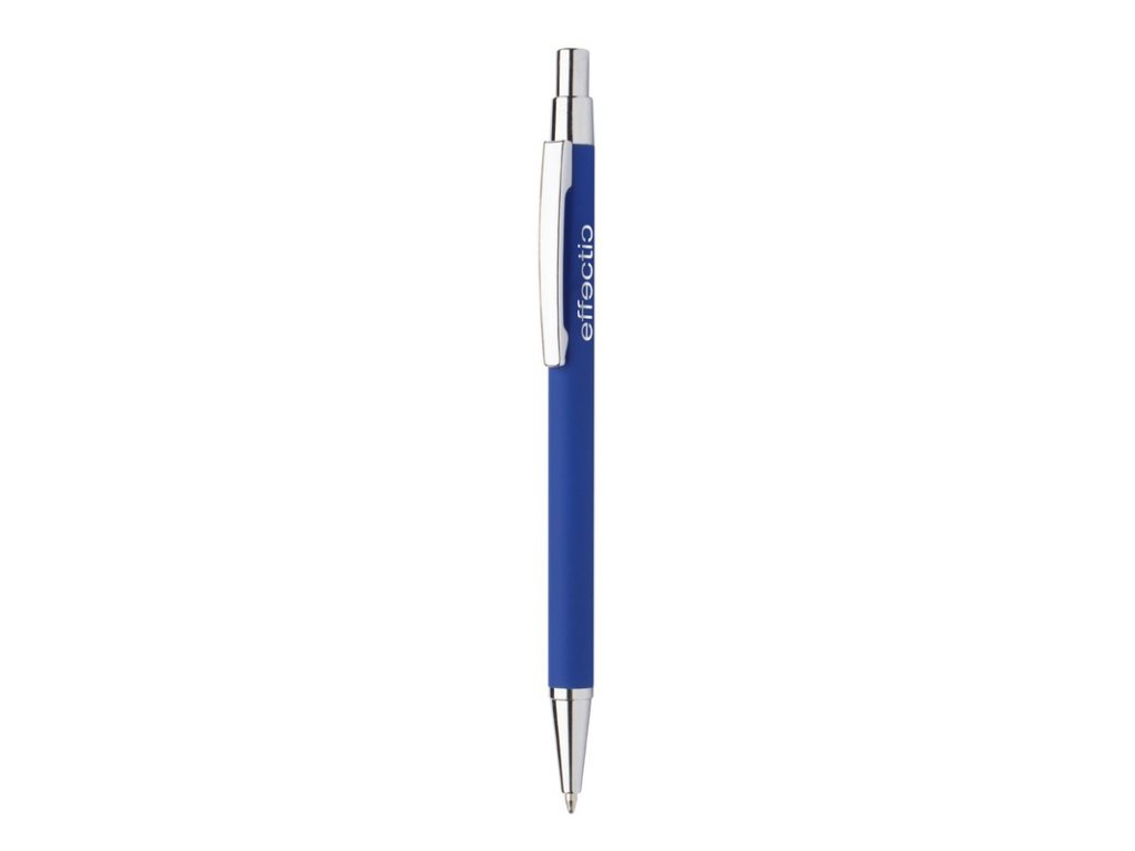 Hliníkové guličkové pero s pogumovanou úpravou a modrou náplňou. Špeciálny povrch pre zrkadlový laser.