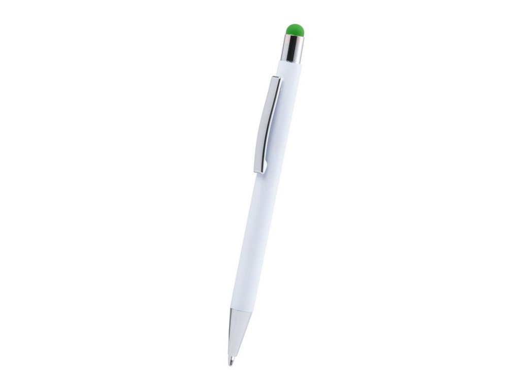 Hliníkové guľôčkové a dotykové pero s pogumovanou úpravou a špeciálnym povrchom pre zrkadlový laser vo farbe stylusu, s modrou náplňou.