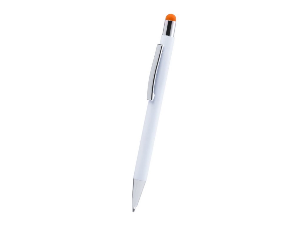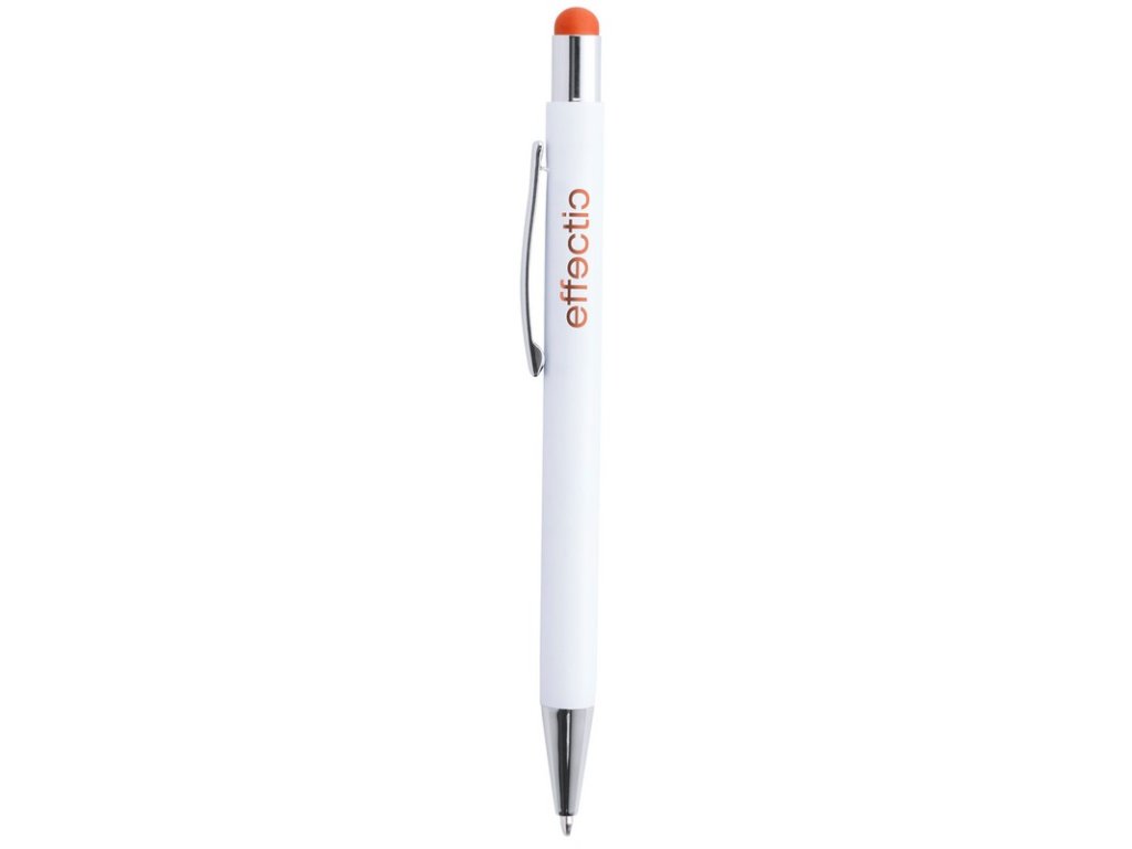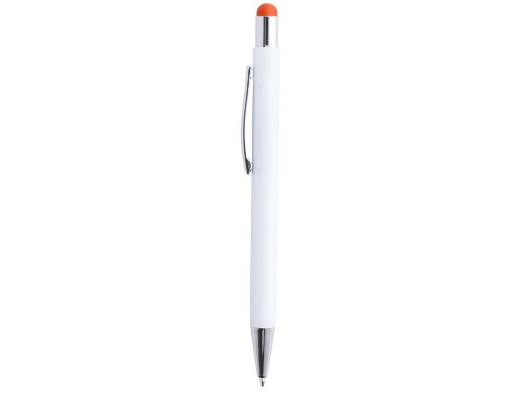 Hliníkové guľôčkové a dotykové pero s pogumovanou úpravou a špeciálnym povrchom pre zrkadlový laser vo farbe stylusu, s modrou náplňou.