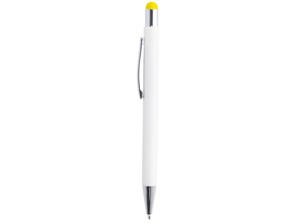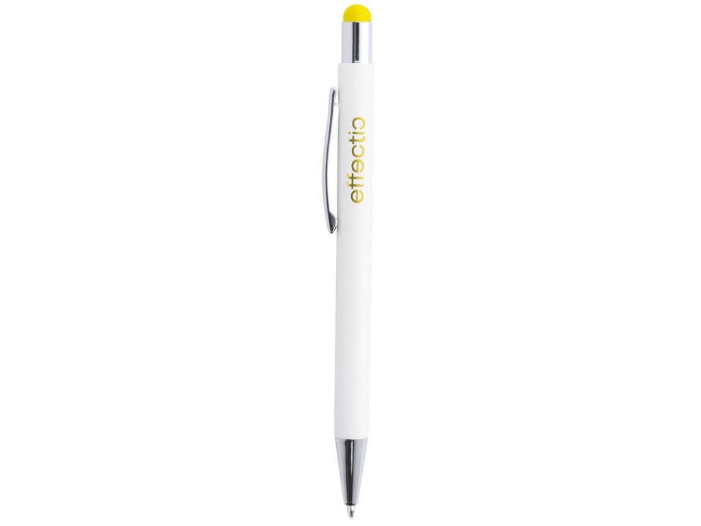 Hliníkové guľôčkové a dotykové pero s pogumovanou úpravou a špeciálnym povrchom pre zrkadlový laser vo farbe stylusu, s modrou náplňou.