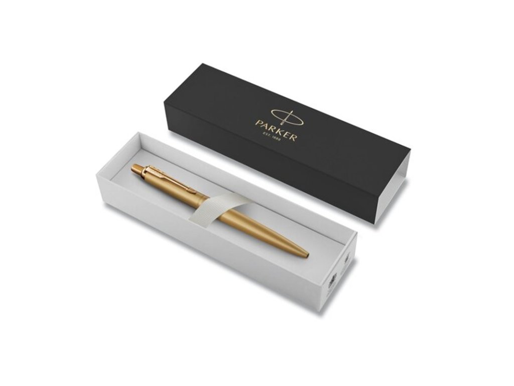 Zlaté lakované telo z nerez ocele. V kombinácií s doplnkami potiahnutými pomocou techniky PVD odolnou matne zlatou vrstvou. Modrá náplň.