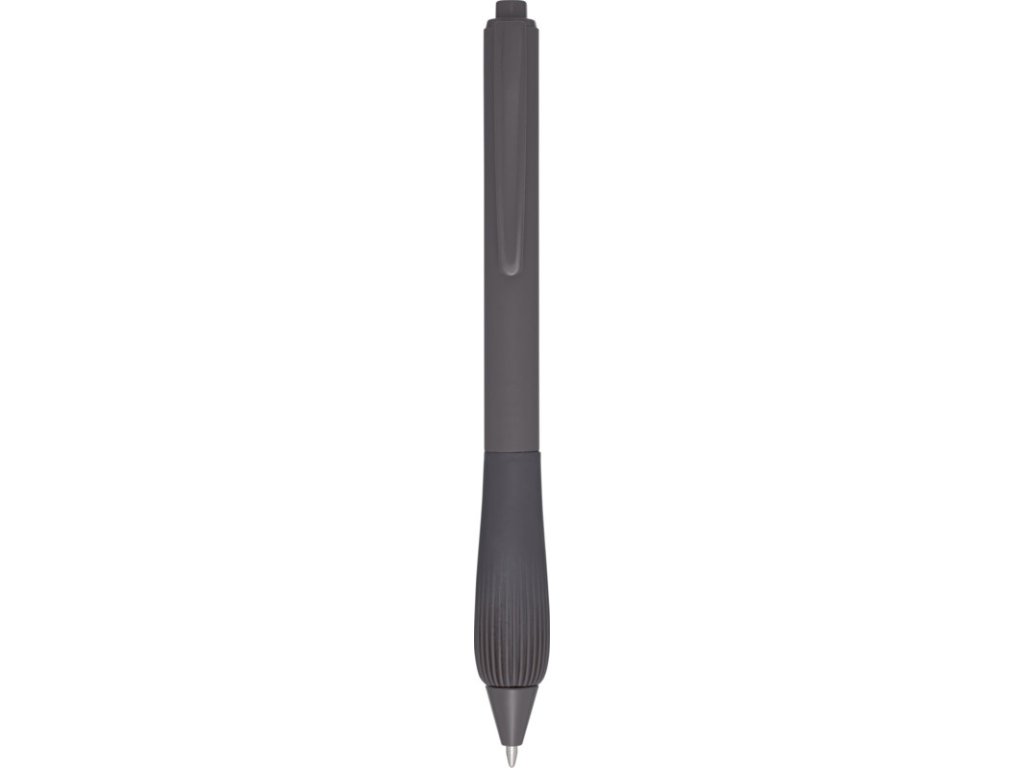 Guľôčkové pero z recyklovaného plastu s pogumovaným telom a rukoväťou z TPR. Modrá náplň. Dĺžka písania: 1000 metrov. Rozmer hrotu: 1,0 mm.