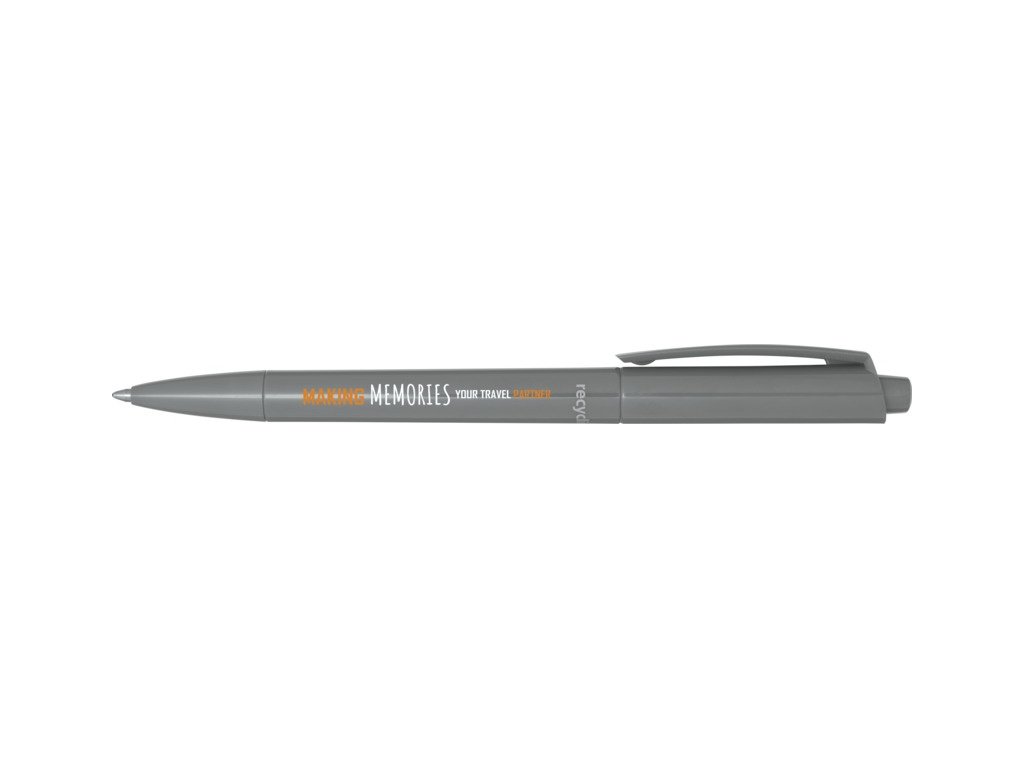 Guľôčkové pero s telom a sponou z recyklovaného plastu a hrotom z nerezovej ocele. Modrá náplň. Dĺžka písania: 3000 metrov. Rozmer hrotu: 1,00 mm. Vyrobené v Nemecku.