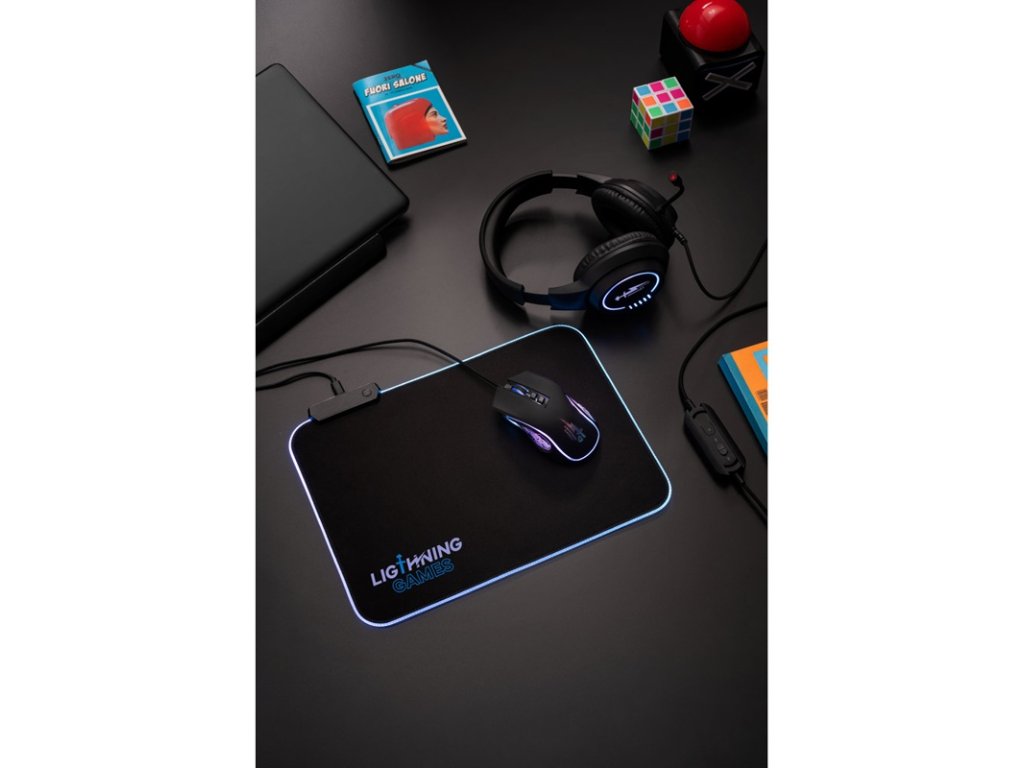 Herná podložka s protišmykovou gumovou základňou. RGB periférne osvetlenie, nakonfigurované v 15 režimoch. Svetlá je možné nakonfigurovať manuálne, čo vám umožní nastaviť si svoj obľúbený vzor. Odolný 1,5 metrový kábel. Dodávané v darčekovej krabičke