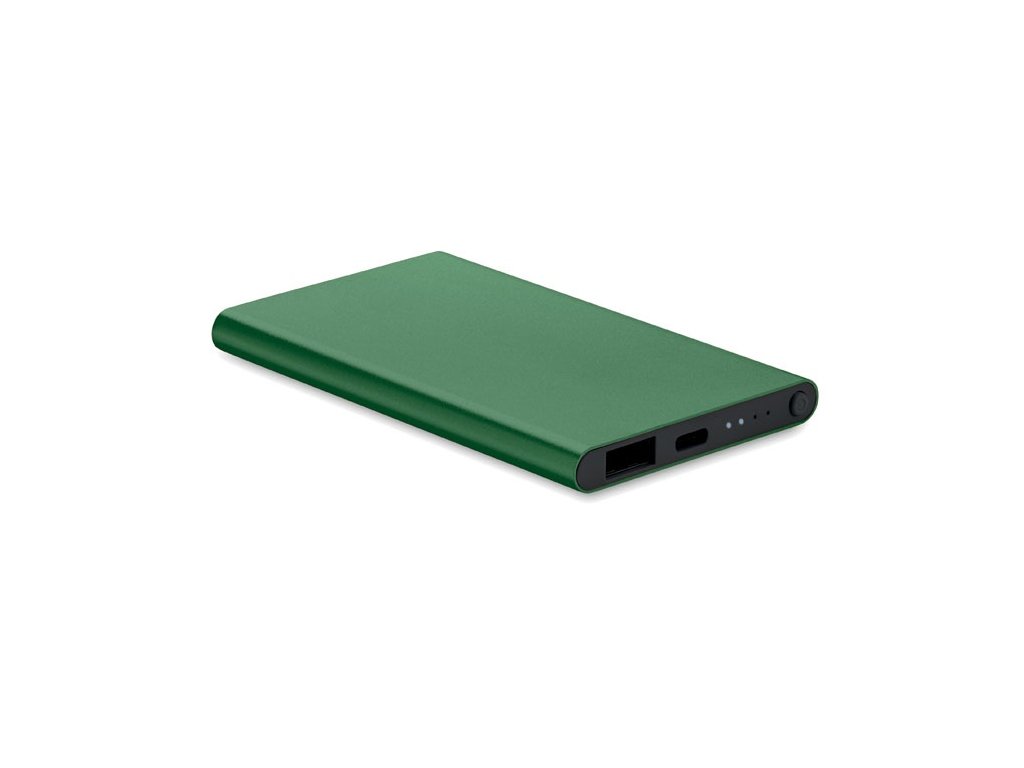 Powerbanka s kapacitou 4000 mAh z recyklovaného hliníka. Výstupný prúd DC5V/2A. Súčasťou balenia je kontrolka a USB kábel s konektorom typu C. Vstup/výstup: Typ-C.