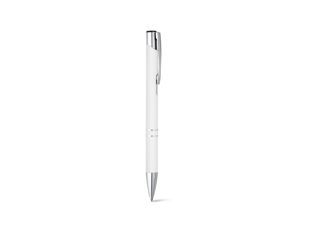Pogumované hliníkové pero BETA SOFT (čierna náplň), white