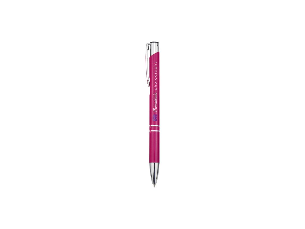 Guľôčkové pero so stláčacím mechanizmom, lakovanou a leštenou povrchovou úpravou a nápadnými detailmi z chrómu.