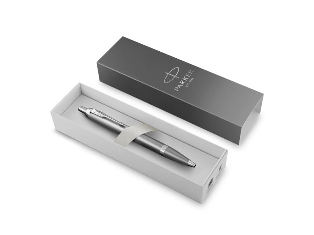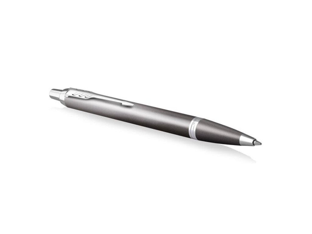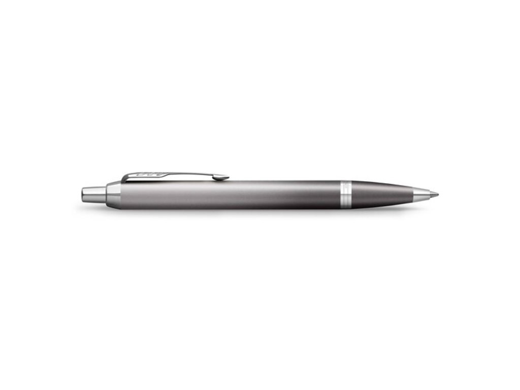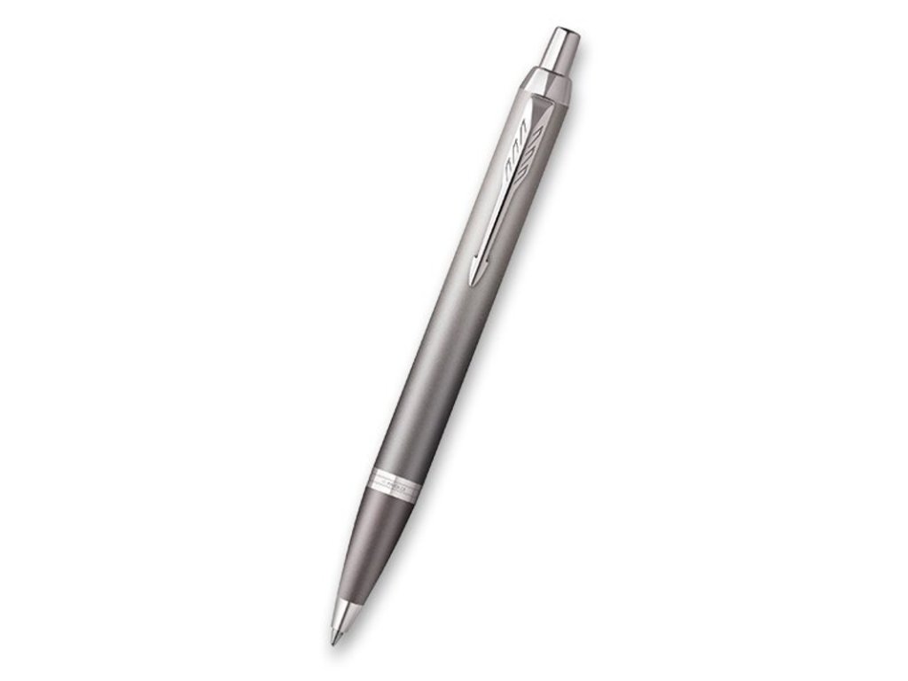 Guľôčkové pero Parker IM Writing Rituals Grey CT má telo pokryté saténovo metalickým farebným lakom. V kombinácii s doplnkami pokovovanými chrómom. Modrá náplň.