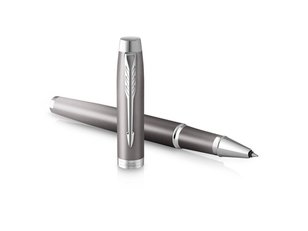 Roller Parker IM Writing Rituals Grey CT má telo a vrchnák pokrytý saténovo metalickým farebným lakom. V kombinácii s doplnkami pokovovanými chrómom. Dodávané s čiernou náplňou.