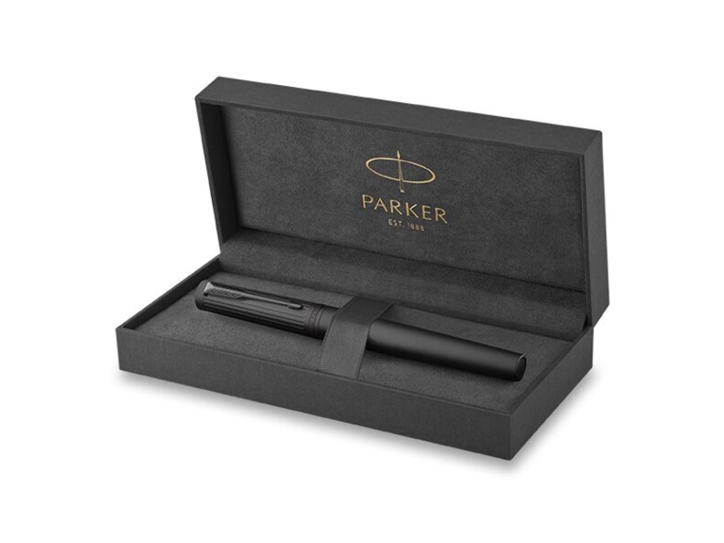 Plniace pero má mosadzné telo a vrchnák pokryté saténovo matným čiernym lakom, úchop a vrchnák zdobené pravidelnými rytinami. Hrot z nerez ocele s ozdobnou rytinou a potiahnutý odolnou čiernou vrstvou. Vrátane 2 bombičiek (modrá a čierna).