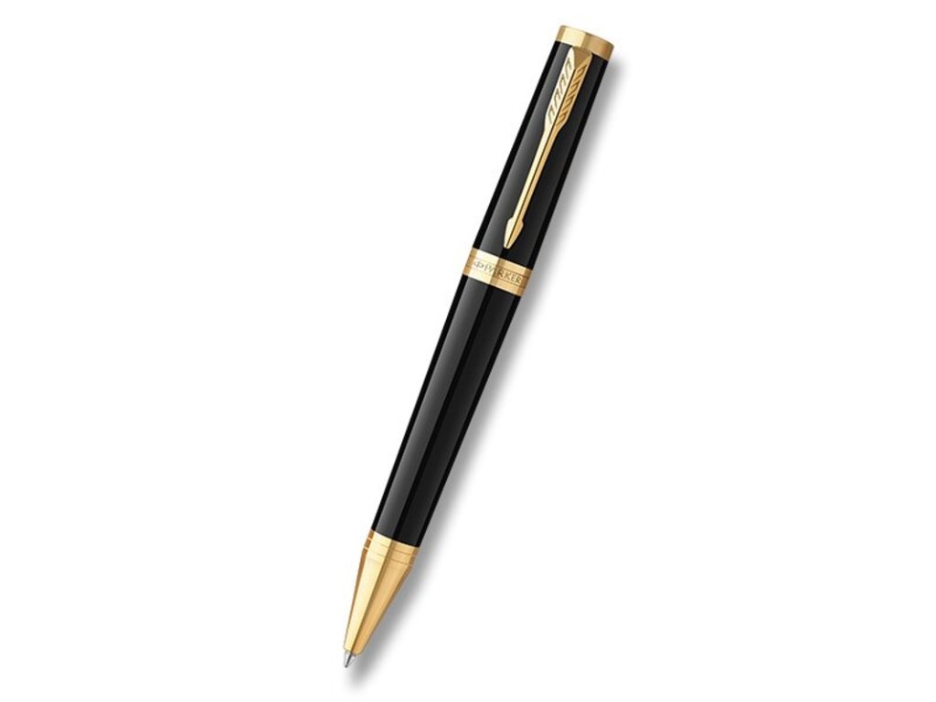 Guľôčkové pero Parker Ingenuity Black GT má mosadzné telo pokryté čiernym lakom. V kombinácii s doplnkami pozlátenými pomocou techniky PVD. Otočný mechanizmus. Čierna náplň (hrot M).