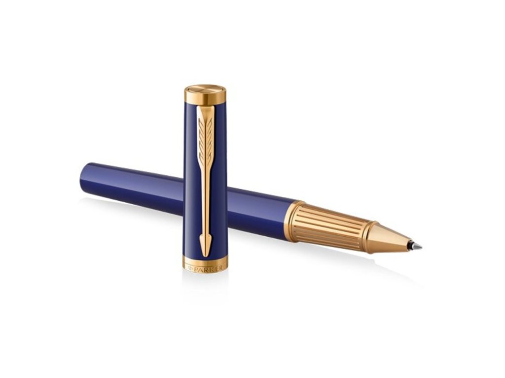 Roller Parker Ingenuity Dark Blue GT má mosadzné telo a vrchnák pokryté tmavomodrým lakom, úchop je zdobený pravidelnými rytinami. V kombinácii s doplnkami pozlátenými pomocou techniky PVD. Čierna náplň.