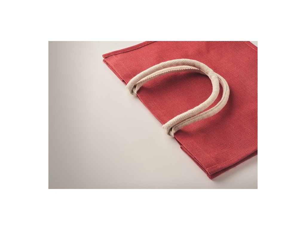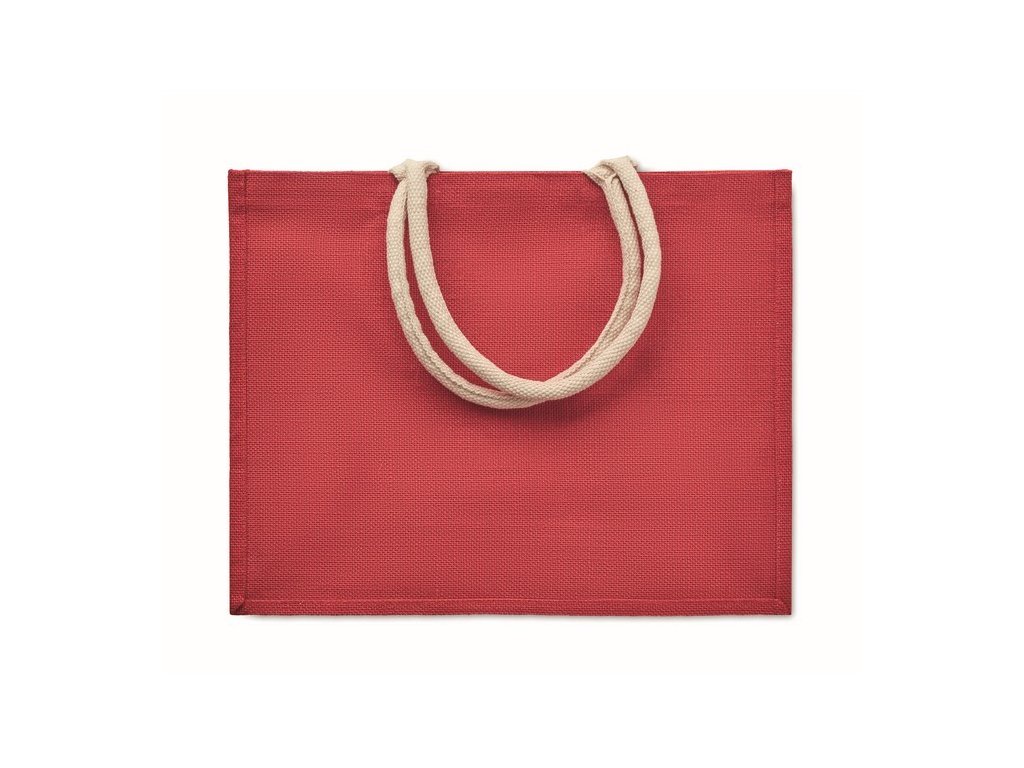 Jutová laminovaná nákupná alebo plážová taška s bavlneným uchom. Krátke uchá.